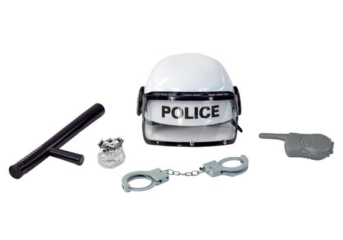 ΠΕΡΙΛΑΜΒΑΝΟΝΤΑΙ / INCLUDED:Το σετ αποτελείται από: κράνος, χειροπέδες, ασύρματο, γκλοπ, και σήμα