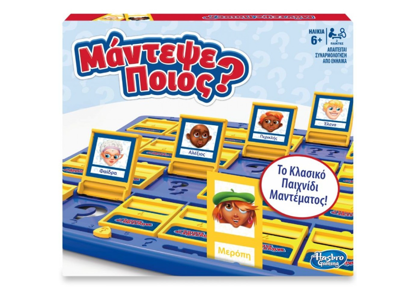 Το γνωστό σας επιτραπέζιο Μάντεψε Ποιος? Κάνε έξυπνες ερωτήσεις και μάντεψε σωστά τον μυστικό χαρακτήρα του αντιπάλου σου για να είσαι ο νικητής! Mε 6 διαφορετικά θέματα με 144 χαρακτήρες, σε πρακτική κασσετίνα για εύκολη μεταφορά.Λειτουργεί με μπαταρίες.